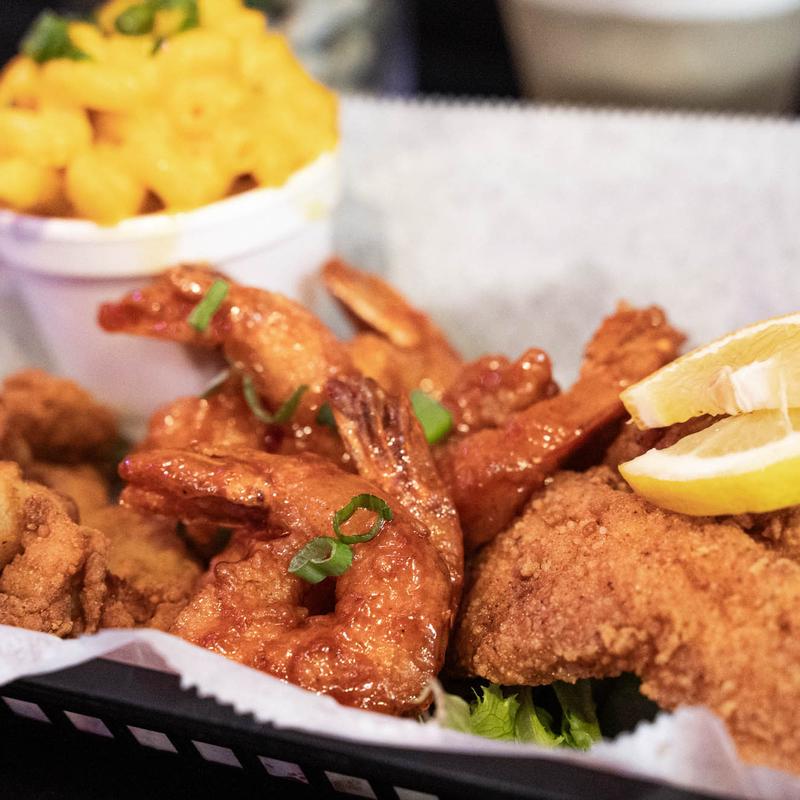 Create your perfect seafood symphony with our Ocean Trio Platter. Dive into a selection of three from our sea of treasures: Fried flounder, seasoned whiting, crispy catfish, homestyle battered oysters, beer battered cod, and flavorful fried shrimp. Indulge in a customized seafood feast, expertly prepared and served with your choice of sides. A maritime medley that promises a tidal wave of satisfaction.